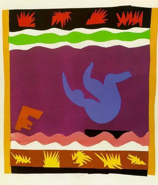 剪贴画是一种有很强装饰性的平面艺术,与马蒂斯鲜明而简洁的创作风格不谋而合,这项独特的色彩语言带给马蒂斯一股极高的创作热情。他的剪贴画作品一如其油画创作,通过抽象而简洁的色块拼接,形成色彩碰撞的独特张力,他用最单纯、最直接的手法将形与色拼接在一起,宣泄着创作的灵感与自我表现的欲望。