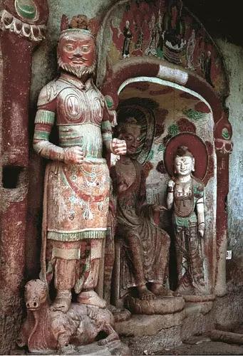 自佛教传入中国,佛教艺术也同时传入中国,在中央亚细亚与印度的交通要道上,古来营造了不少石窟,其中优美的造象与壁画,保存至今,放射出灿烂的光彩,例如高昌的壁画,敦煌千佛洞的壁画和塑象,大同云岗和洛阳龙门的雕像等等,这些著名的佛教洞窟艺术,都是世界所熟知的,已经成为世界的宝贵艺术遗产,甘肃麦积山石窟就是其中之一。