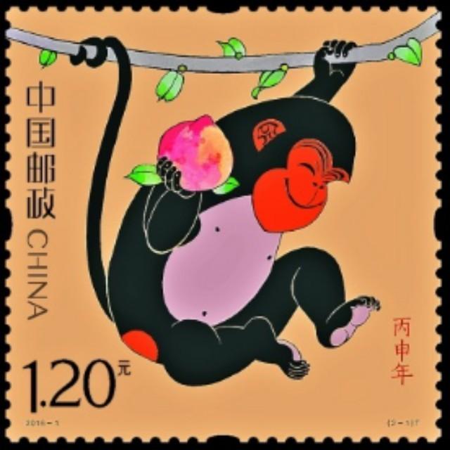 2.《丙申年》“猴票”1月5日发行。全套面值2.40元,该邮票为黄永玉先生设计,一套两枚。