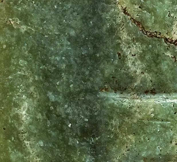 “虫咬纹”往往出现在玉器件玉质较松散的部位和天然石纹中(和田玉密度均匀,这种现象较少)。