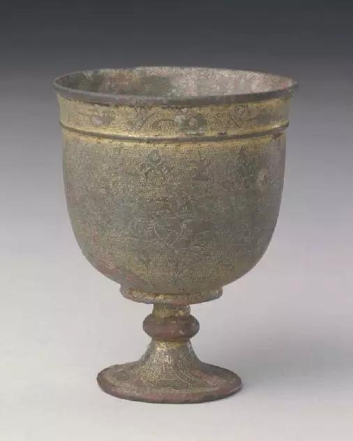 唐 鎏金刻人马狩猎纹杯 故宫博物院藏