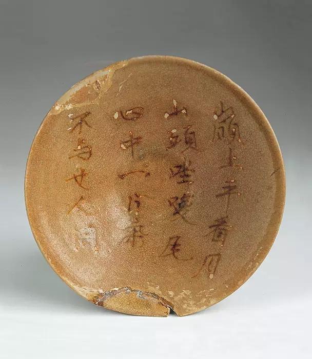 唐 青釉褐彩“岭上平看月”诗文碗 长沙窑窑址出土