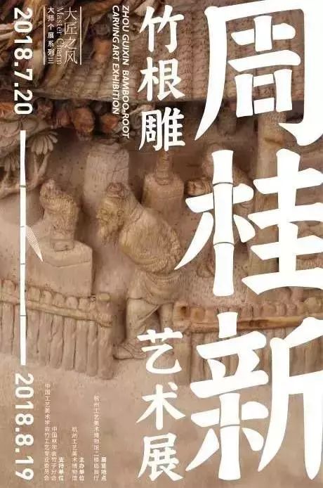 “周桂新竹根雕艺术展”于2018年7月20日至2018年8月19日在杭州工艺美术博物馆二楼临展厅举行。此次展览将通过亚太地区竹工艺名匠、浙江省非物质文化遗产“东阳竹根雕”代表性传承人周桂新的800余件作品从“生生不息”、“成竹在胸”、“势如破竹”、“精雕细刻”四大单元展开。