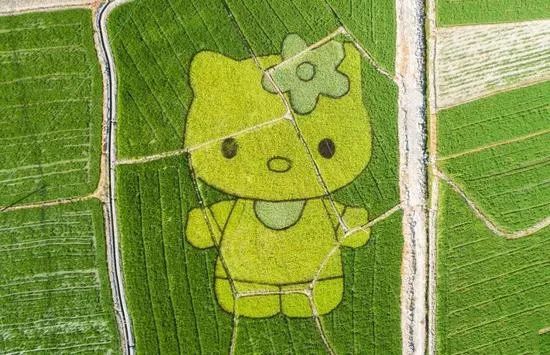 巧手农民创意多 稻田种出HelloKitty和小猪佩奇