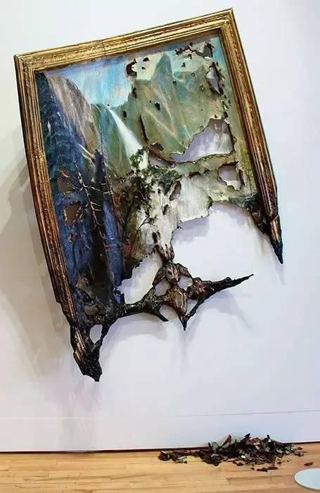 在美国纽约有这样一位艺术家,当你初看到她的作品时,一定会认为这里是个事故现场:油画或烧毁、或撕碎、或破裂……每一件寻常的艺术品都遭到了不同种类的破坏,却又重新组成了一件的新作品。