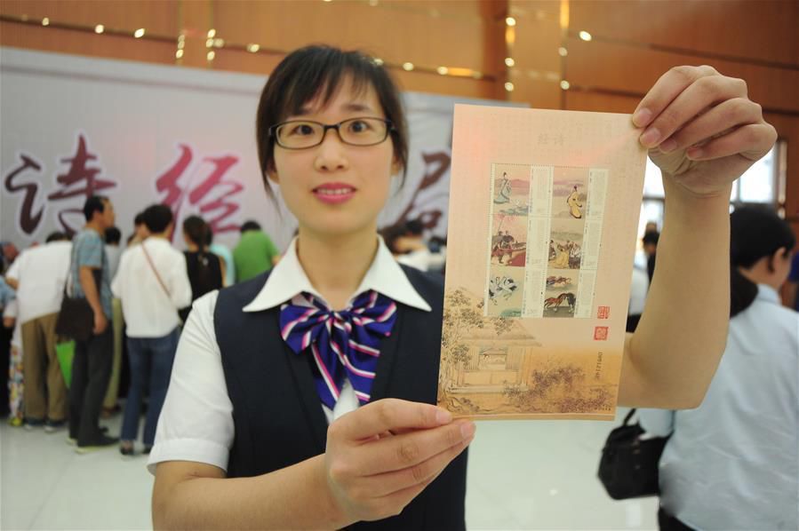 2018年9月8日,中国邮政发行《诗经》特种邮票一套6枚,邮票图案名称分别为《周南·关雎》《秦风·蒹葭》《秦风·无衣》《小雅·鹿鸣》《小雅·鹤鸣》《鲁颂·駉》,全套邮票面值8.90元。