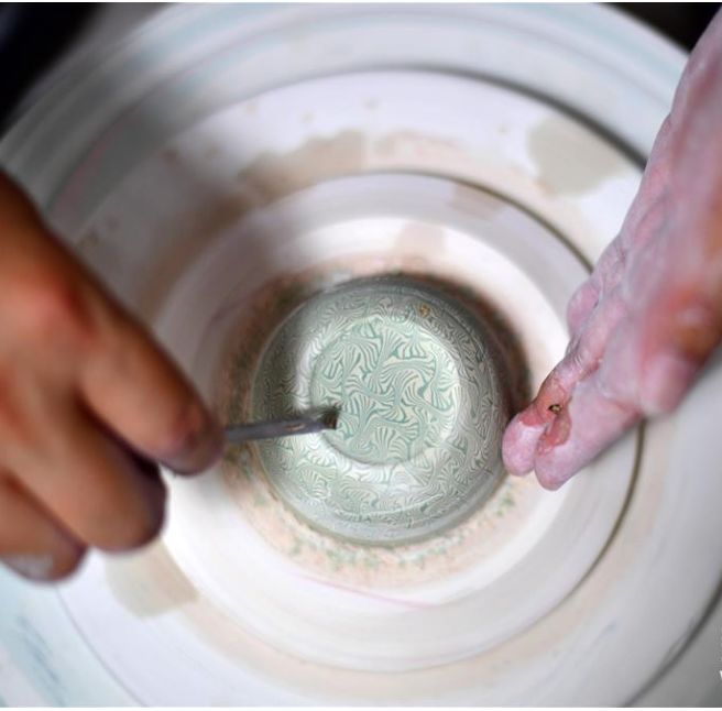 绞胎瓷又名“搅胎瓷”“透花瓷”,制作时瓷器艺人采用绞胎技法,将不同颜色的泥块绞在一起,通过胎内纹饰变化来装饰瓷器,因此绞胎瓷也被称为“编织”出来的瓷器。绞胎瓷烧制技艺历史悠久,制作工序主要包括选料、揉泥、编花、成型、修坯、打磨、上釉等工序。2014年,“当阳峪绞胎瓷烧制技艺”被列为国家级非物质文化遗产名录。