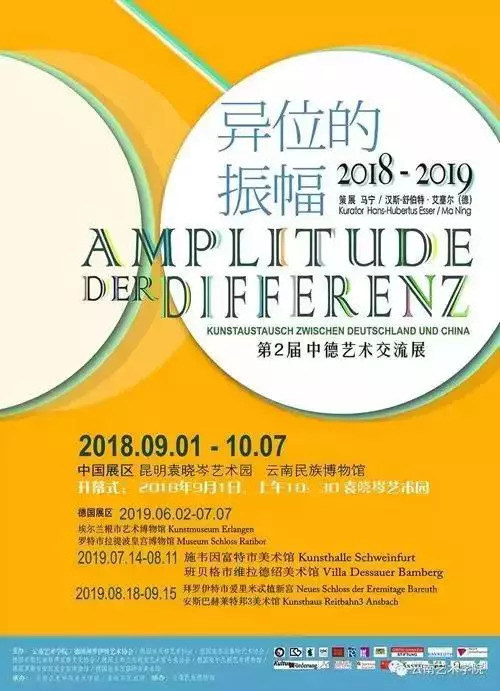 “第二届中德艺术交流展--异位的振幅”于2018年9月1日至2018年10月7日在云南民族博物馆举行。此次展览由云南艺术学院、德国拜罗伊特艺术协会等六个德方艺术机构主办联合,共有26位德国艺术家和56位云南艺术家参与,100余件作品在我馆展出。参展作品涵盖众多的艺术门类,在绘画、版画、雕塑、摄影、拼贴、综合材料等各种媒介之间,也在抽象与具象之间展现艺术差异的同时,刻画了中德两国之间的不同文化形态。