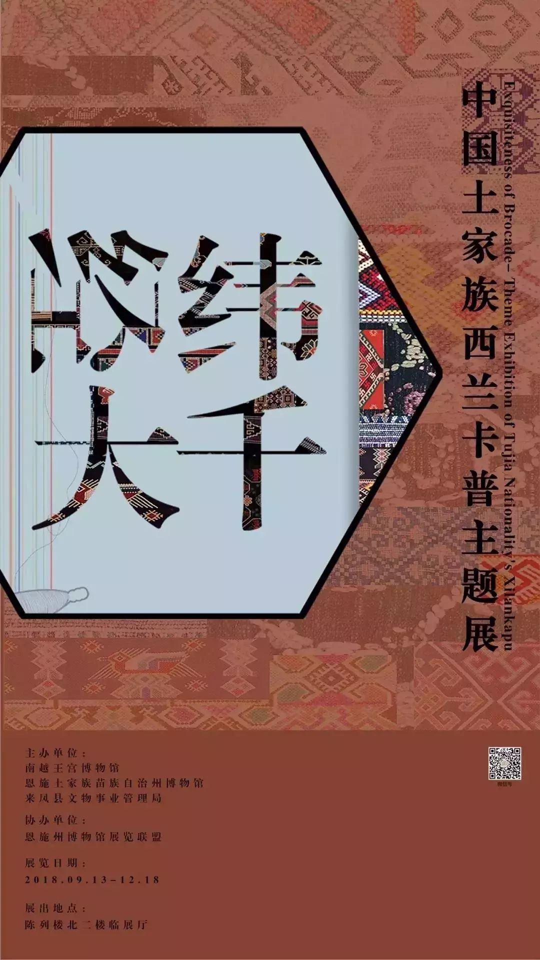 “经纬大千--中国土家族西兰卡普主题展”于2018年9月13日至2018年12月18日在南越王宫博物馆陈列楼北二楼临展厅举行。此次展览60余件来自恩施土家族苗族自治州博物馆、来凤县文物事业管理局及恩施州博物馆展览联盟的西兰卡普与大家在羊城约会!