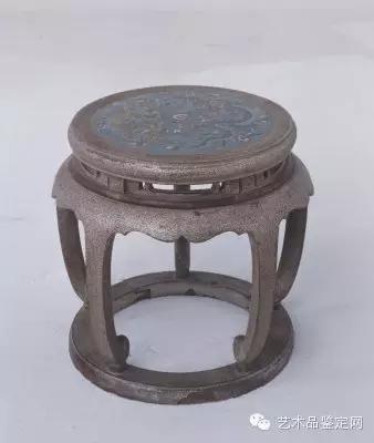 黑漆撒螺钿珐琅面双龙戏珠纹圆凳