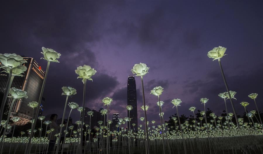 三、2月14日,来自韩国首尔的LED Rose Garden大型公共展览亮相香港。25000朵LED白玫瑰花灯在中环海滨展出,营造出浪漫甜蜜的氛围。