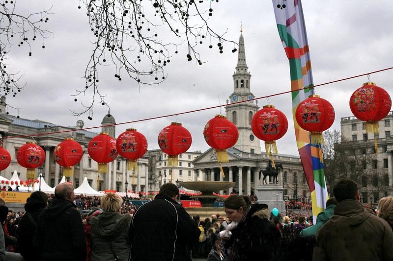 二、2月17日,伦敦市中心特拉法加广场上盛大的春节庆典日前刚刚落下帷幕,这是亚洲以外规模最大的中国农历新年庆祝活动,吸引了约70万市民和游客参加。