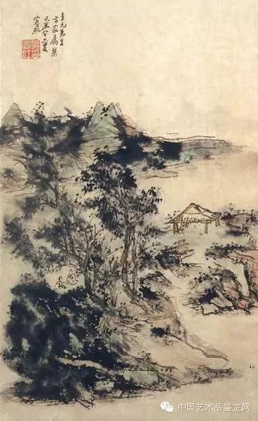 黄宾虹的“黑山”,山上有繁茂的植被,故其虽黑必有内容,浓黑笔触层层相叠,但其中留有星星点点散朗空隙,既显山体厚重,又使山体“活”,也使画面感觉并不沉闷,其笔触虽层叠而运作有致,而作伪者常易画得闷乱,实因其仅仿黄画外形,而无实感之故。