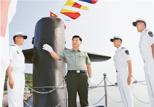 2018年6月11日下午,中共中央总书记、国家主席、中央军委主席习近平视察北部战区海军。这是习近平来到某潜艇部队,登上潜艇,同艇员亲切交谈。 新华社记者 李刚/摄