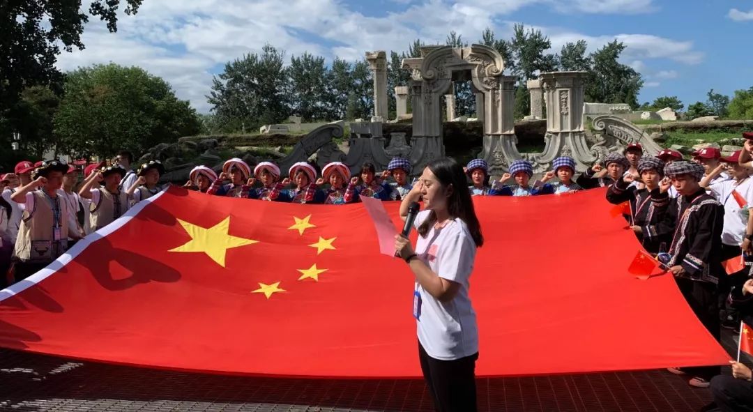 8月13日,圆明园举办的爱国主题夏令营正式开营,来自甘肃省兰州榆中县和贵州省黔西南州贫困地区的近百名师生来到圆明园,在大水法遗址前宣誓,立志守护五星红旗,做新时代的爱国者。