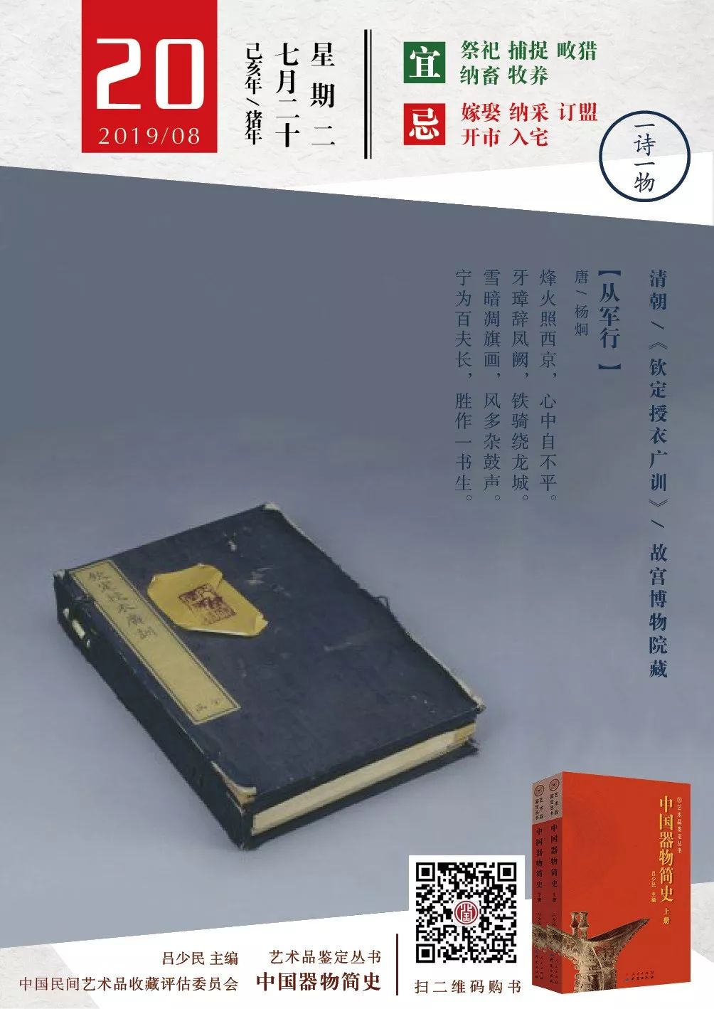 8月20日至10月10日在中国国家博物馆展出,展览分为“取法自然”“天工奇巧”“器韵生动”“万象日新”4个单元,展出的百余件工艺美术作品涵盖雕刻、陶瓷、漆器、金属、首饰、织绣及其他工艺七大类,集中反映出当代工艺美术创作与发展,体现出思想性与艺术性的完美融合,展示了中国当代工艺美术的“灵魂”。 8月19日,四川藏区第一座“声音博物馆”在四川甘孜藏族自治州理塘县高城镇德西一村正式建设落成。在这座面积仅为180平方米左右的“喜马拉雅之声微博物馆”内,保存着来自四川理塘、西藏拉萨等地藏族的传统特色乐器、藏族音乐音视频资料以及宝贵的藏族古乐谱等。乐器包括寺院门前的古老铃铛、达玛鼓、喜马拉雅颂钵和“扎念”等,这些乐器使用黄铜、动物骨头等材料制作,上面多有精美的雕刻,体现出浓郁的藏族风情。 8月18日,漫画家林帝浣在上海书展与读者见面,书迷们和小林医生一起度过了一个幽默的下午。今年4月,林帝浣漫画集《小林漫画:人间治愈术》由长江新世纪出版社发行,其中的一幅漫画恰好被今年高考全国卷当做作文题选中。画里,老师说:“你们再看看书,我再看看你们。”时代新章——国家博物馆工艺美术作品邀请展