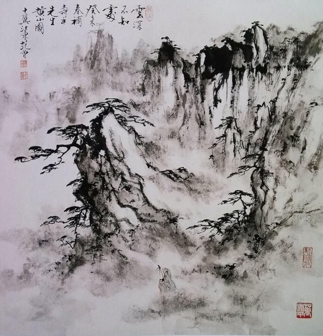 董寿平(1904一1997)原名董揆,山西洪洞县人。早年毕业于天津南开大学和北京东方大学。他以画松、竹、梅、兰著称,晚年则以黄山为题材画山水,亦善书法。 1943年 云深不知处
